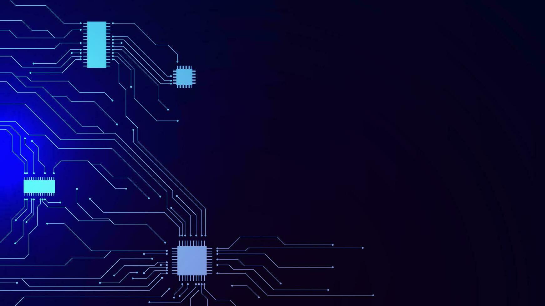 Abstract blue technology with circuit board and microchip concept. Smart network and digital technology design background. Vector illustration. Pro Vector