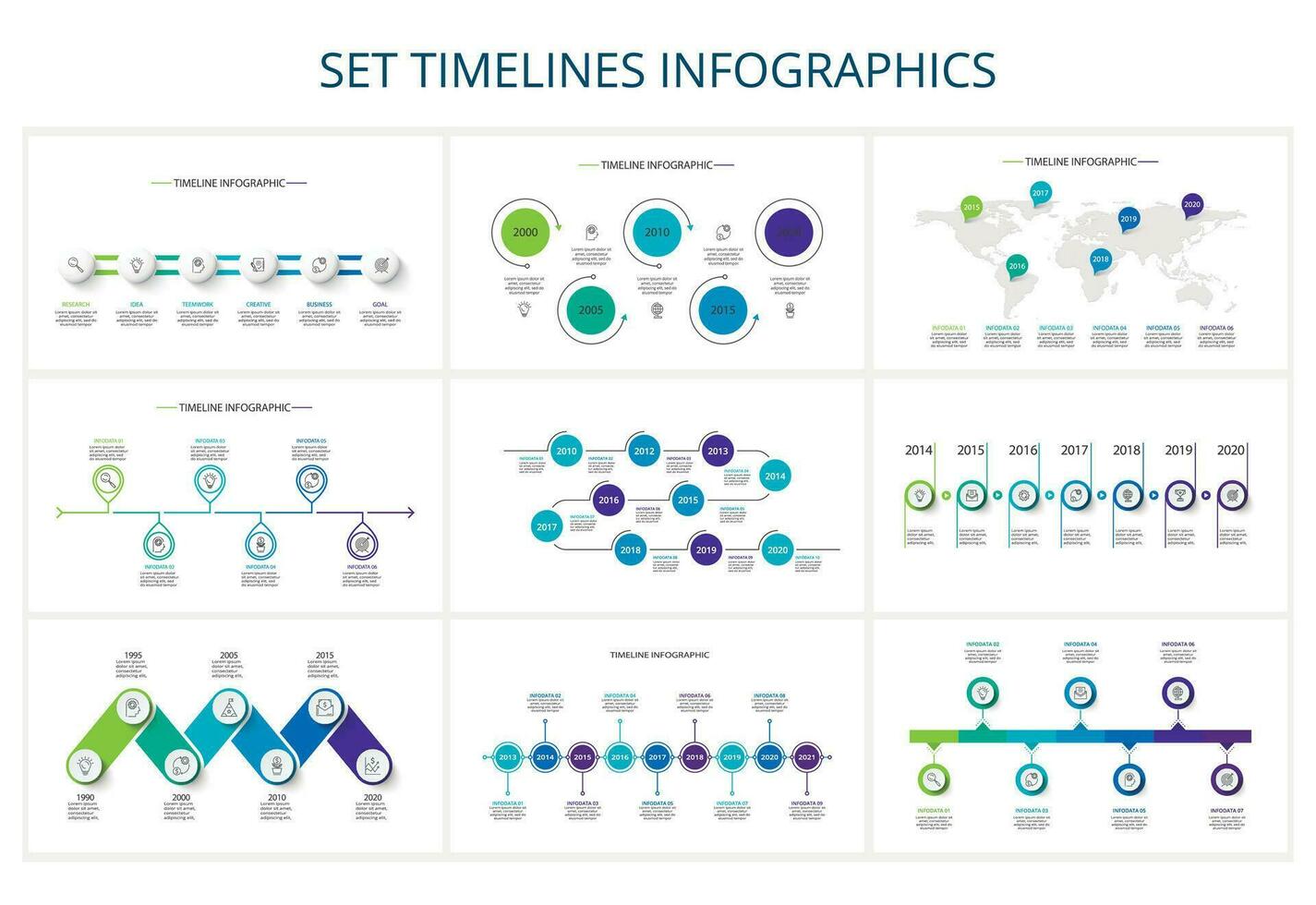 Creative concept for infographic with 5, 6, 7, 9 steps, options, parts or processes. Business data visualization Pro Vector