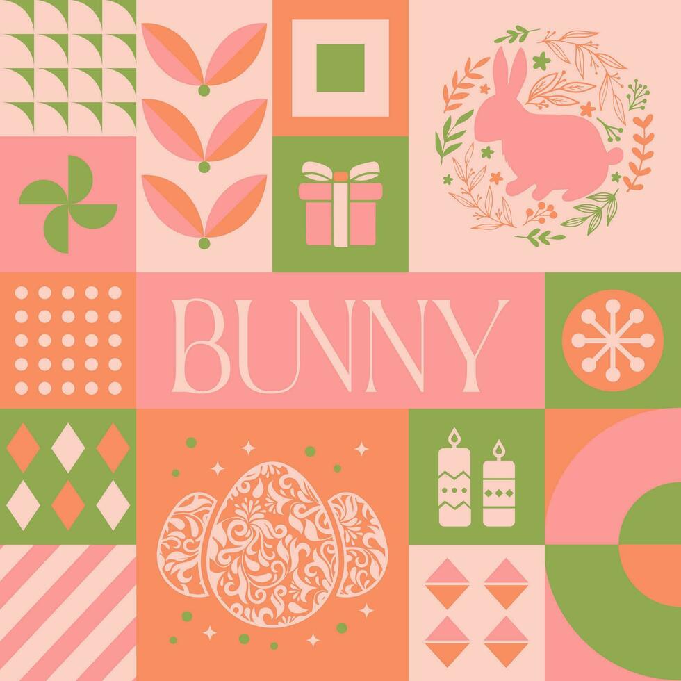Easter Bunny seamless pattern in scandinavian style postcard with Retro clean concept design vector