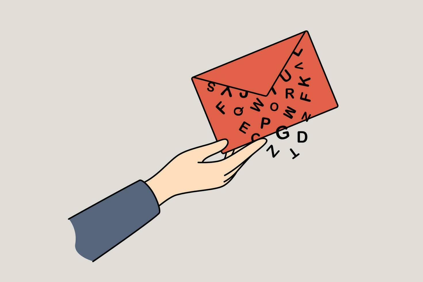 Envelope with letter in hand of person sending message with letters falling out. Pro Vector