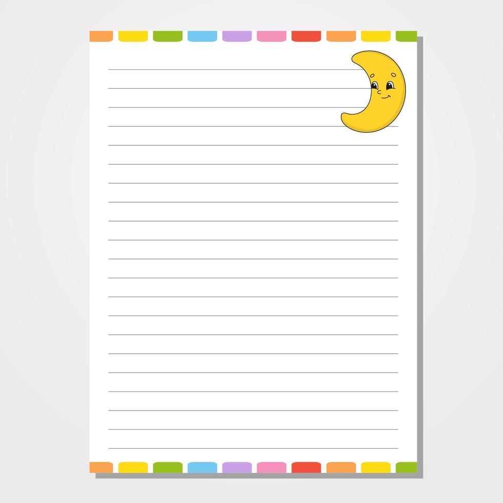 Sheet template for notebook, notepad, diary. Funny character. Isolated vector illustration. Cartoon style. Pro Vector