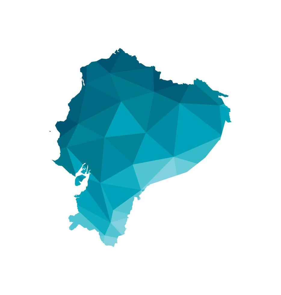 Vector isolated illustration icon with simplified blue silhouette of Ecuador map. Polygonal geometric style, triangular shapes. White background. Pro Vector