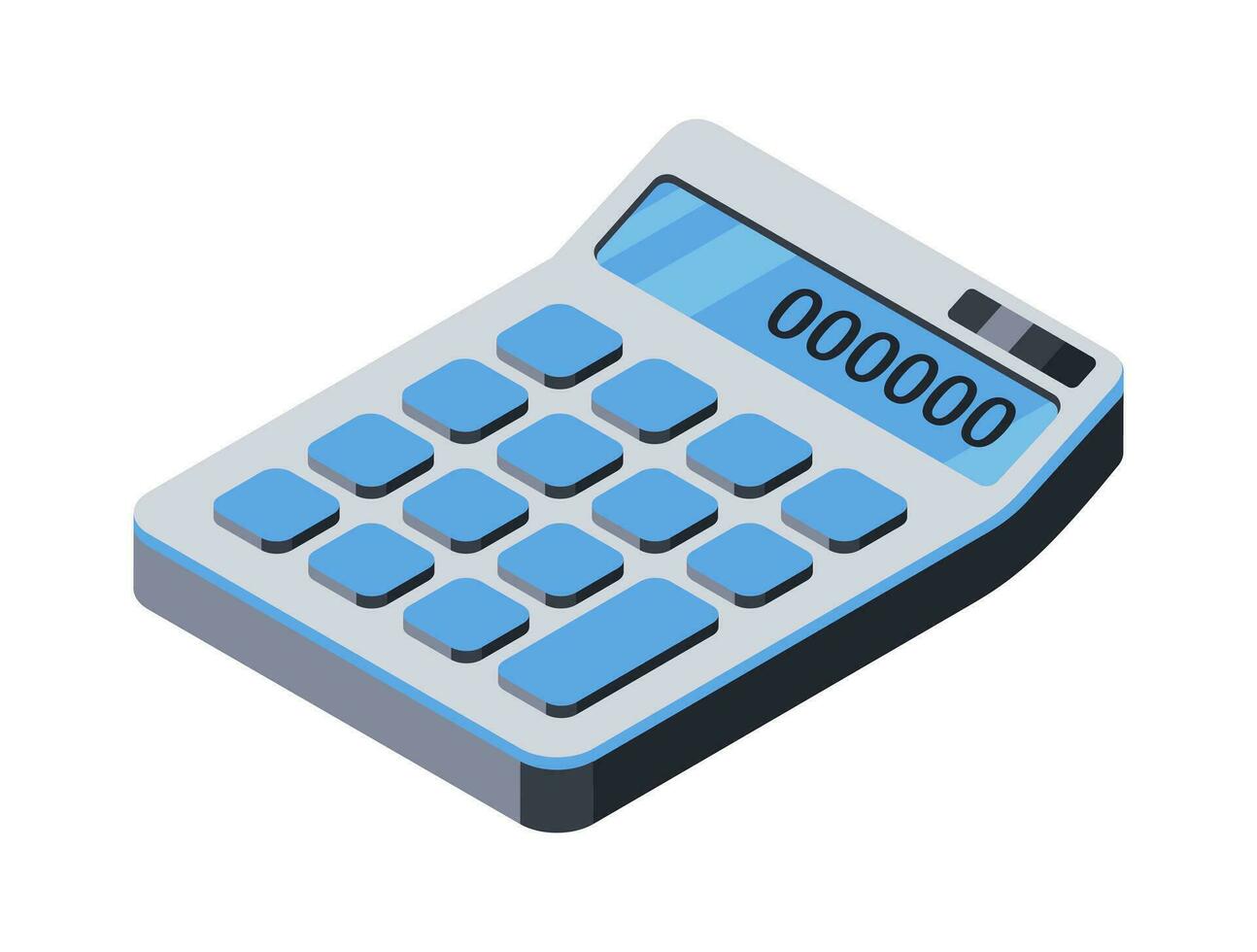3D icon of calculator. Electronic device for calculating, mathematical operations, accounts. Gadget for work and study. Isolated object on a white background. Vector illustration in an isometric style Pro Vector