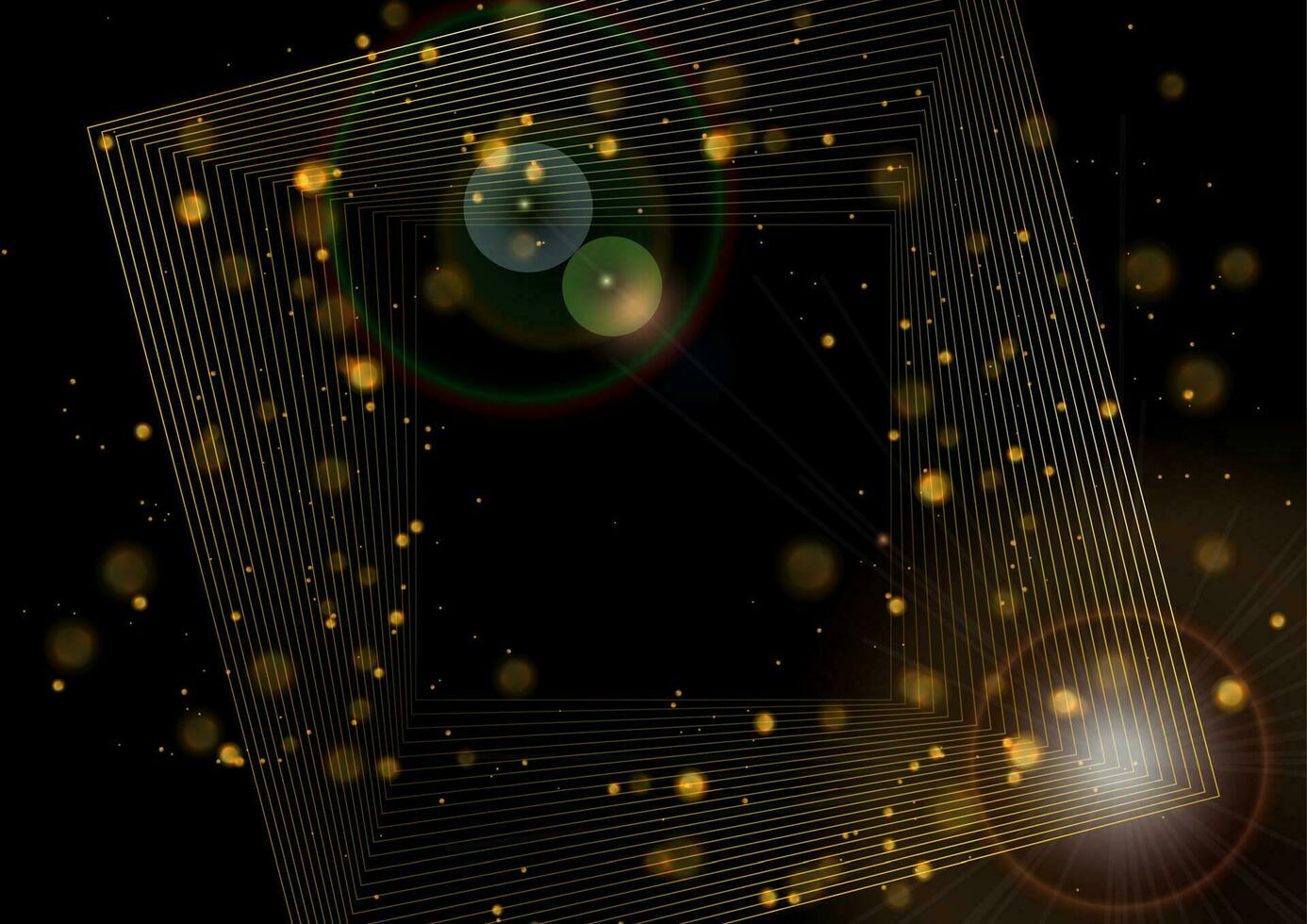 Abstract luxury golden background with linear squares and bokeh lights Pro Vector