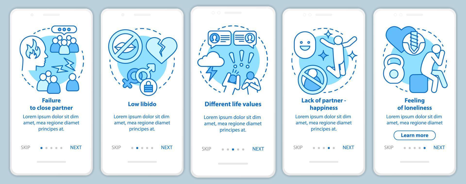 Unhappy relationships onboarding mobile app page screen with linear concepts Pro Vector