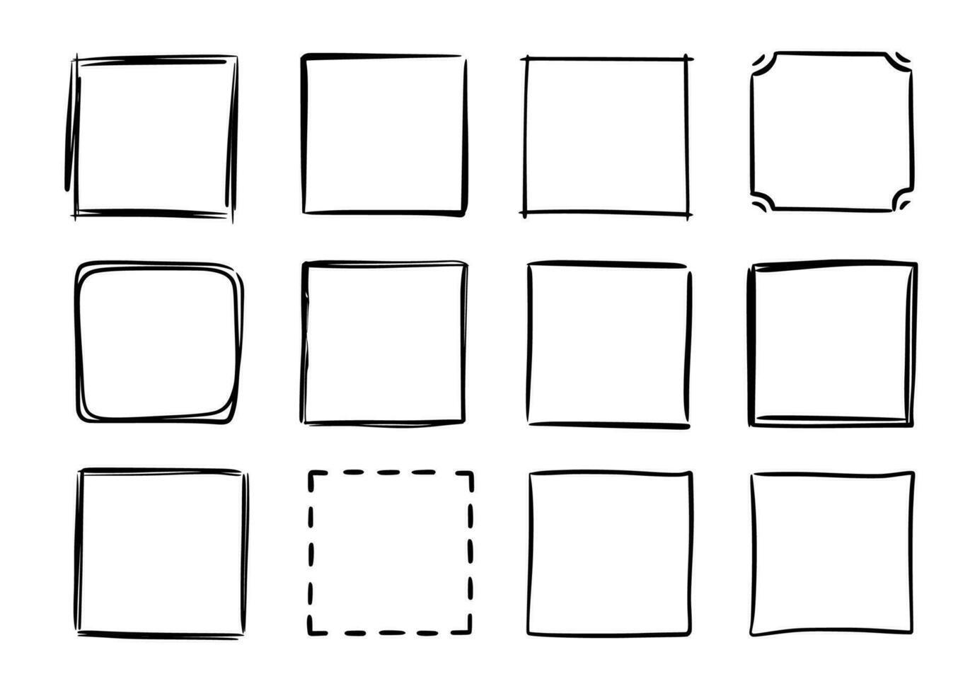 Hand drawn sketch frame vector. Simple doodle rectangle pencil frame border shape. Hand drawn doodle scribble border element for text quote template. Pencil brush stroke style. Vector Pro Vector
