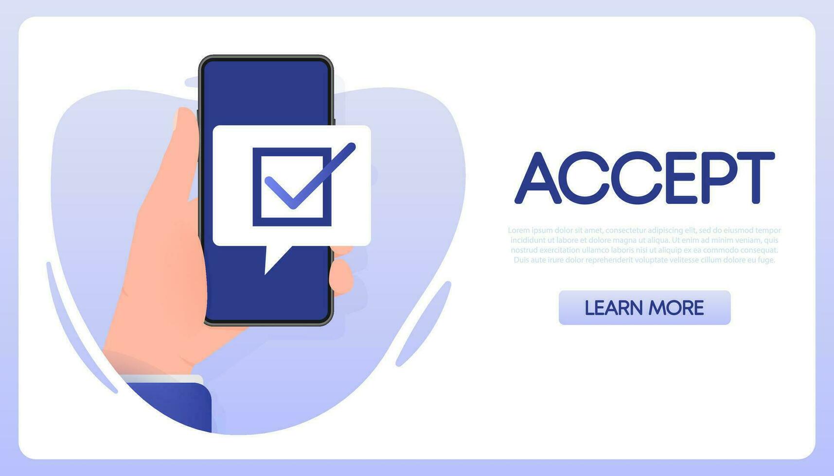 Smartphone having approved tick notification, successful operation check mark. Laptop with checkmark notification Pro Vector
