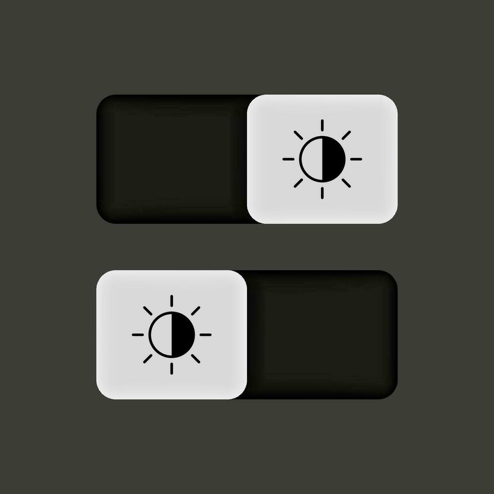 Flat switch bubble slide button for dark mode or black mode on black background. Vector illustration. Pro Vector