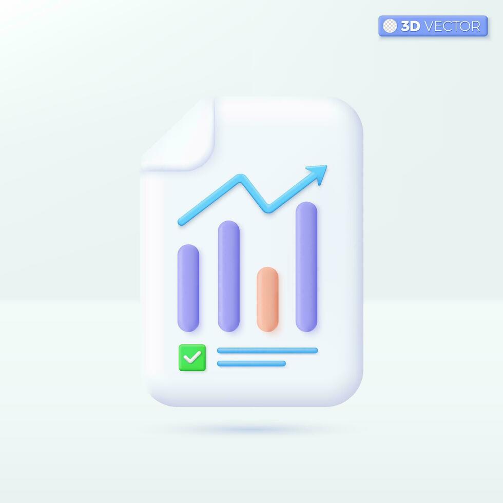 Document and column graph icon symbols. Project task management, financial success, business concept. 3D vector isolated illustration design. Cartoon pastel Minimal style. For design ux, ui, print ad. Pro Vector