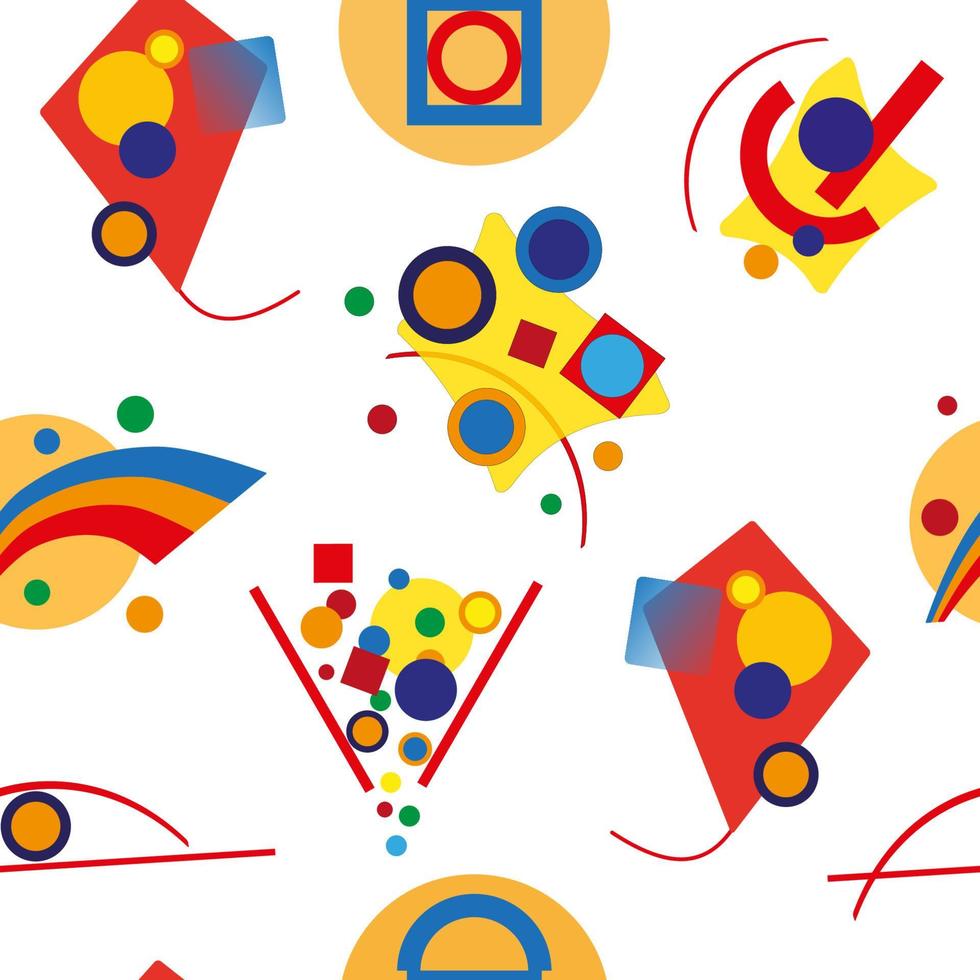 Seamless pattern with abstract objects made of geometric shapes on white vector