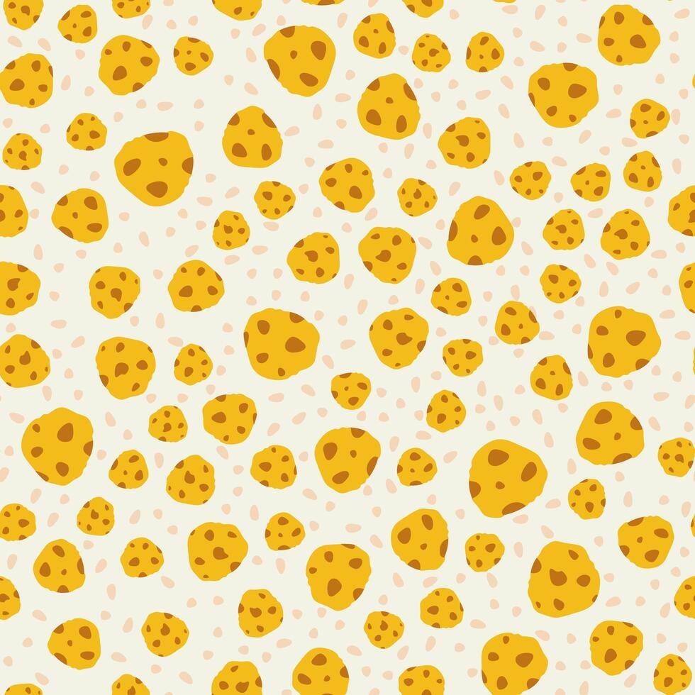 Seamless pattern of cookies with chocolate chips or nuts. Crumbs from cookies. Chaotic location Pro Vector