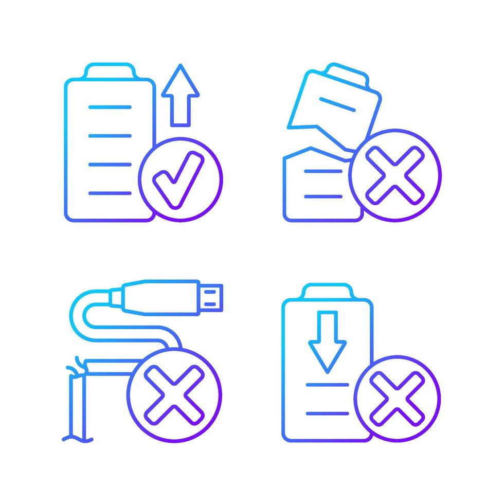Drone performance gradient linear vector manual label icons set Pro Vector