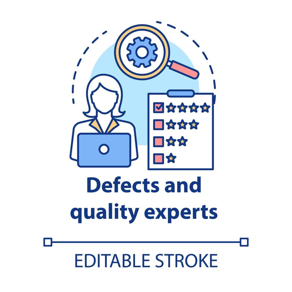 Defects and quality experts concept icon. Software development idea thin line illustration. Application programming. IT project management. Vector isolated outline drawing. Editable stroke Pro Vector