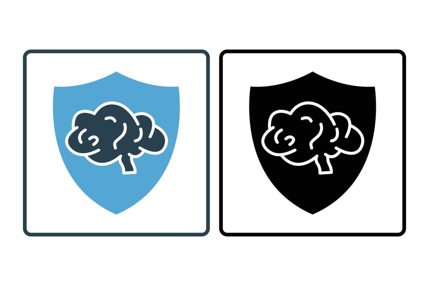 Defense against fallacies icon. shield with brain, icon related to critical thinking. suitable for web site design, app, user interfaces, printable etc. Solid icon style. Simple vector design editable Pro Vector