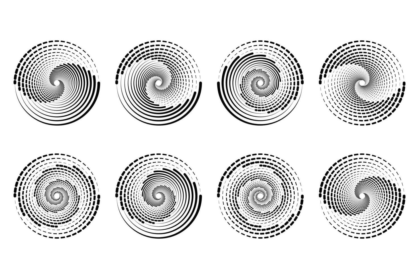 Concentric random circles with dynamic lines. Vortex circular swirl. vector