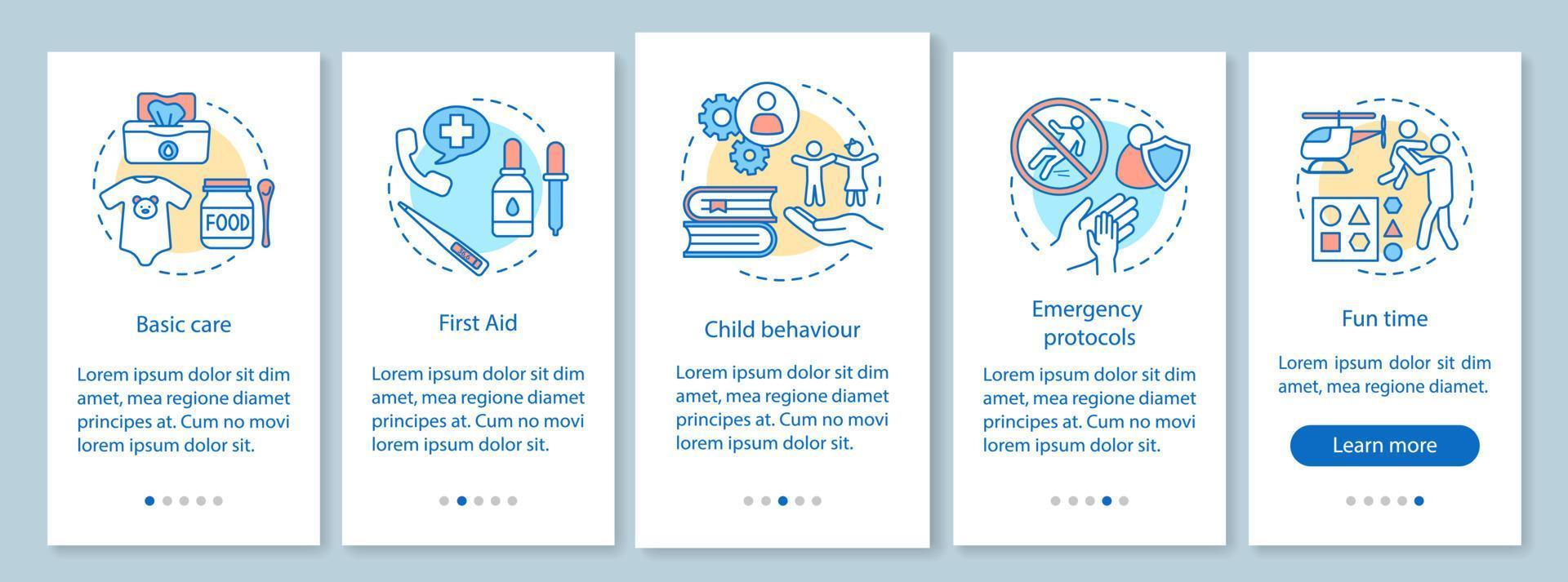 Babysitting onboarding mobile app page screen with linear concepts Pro Vector