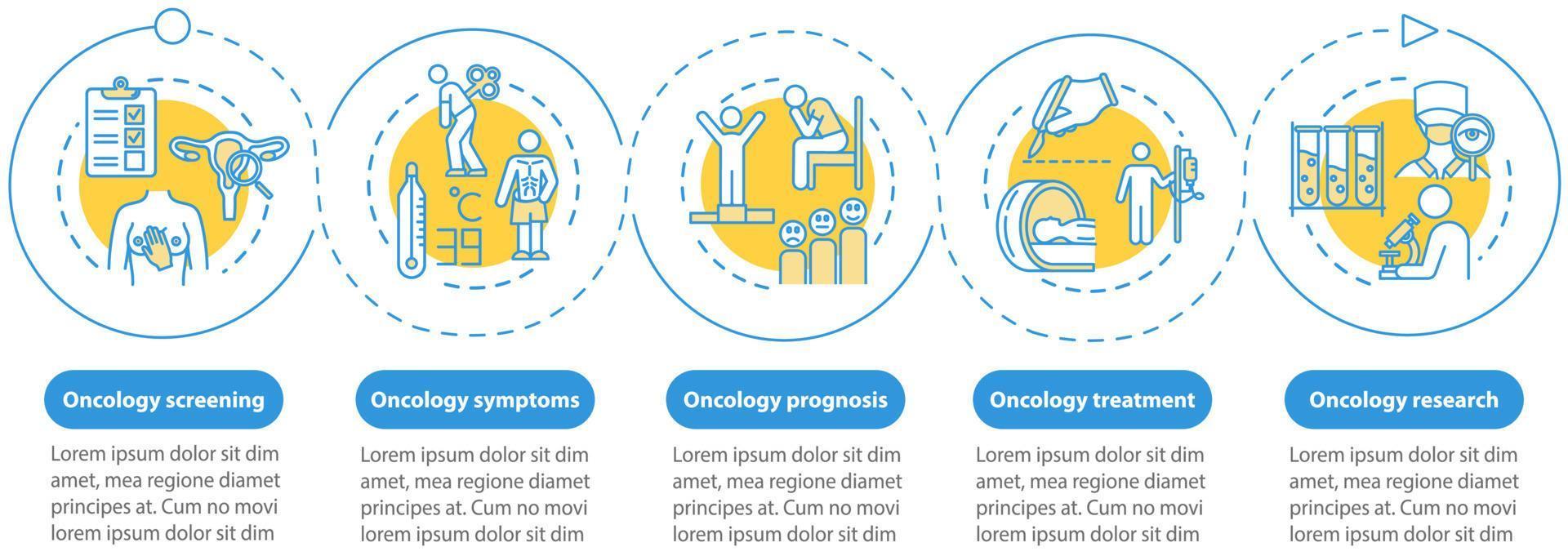 Oncology vector infographic template. Illness treatment presentation design elements. Cancer symptoms. Data visualization with five steps. Process timeline chart. Workflow layout with linear icons Pro Vector