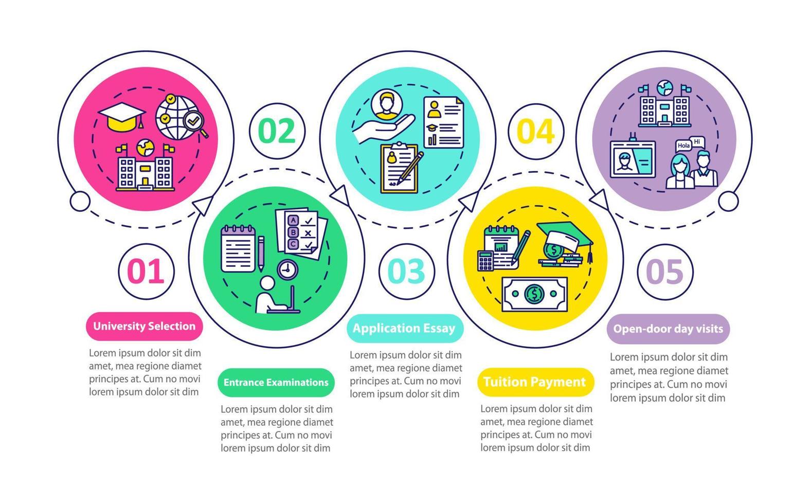 University entrance vector infographic template. Business presentation design elements. Data visualization with 5 steps and options. Process timeline chart. Workflow layout with linear icons Pro Vector