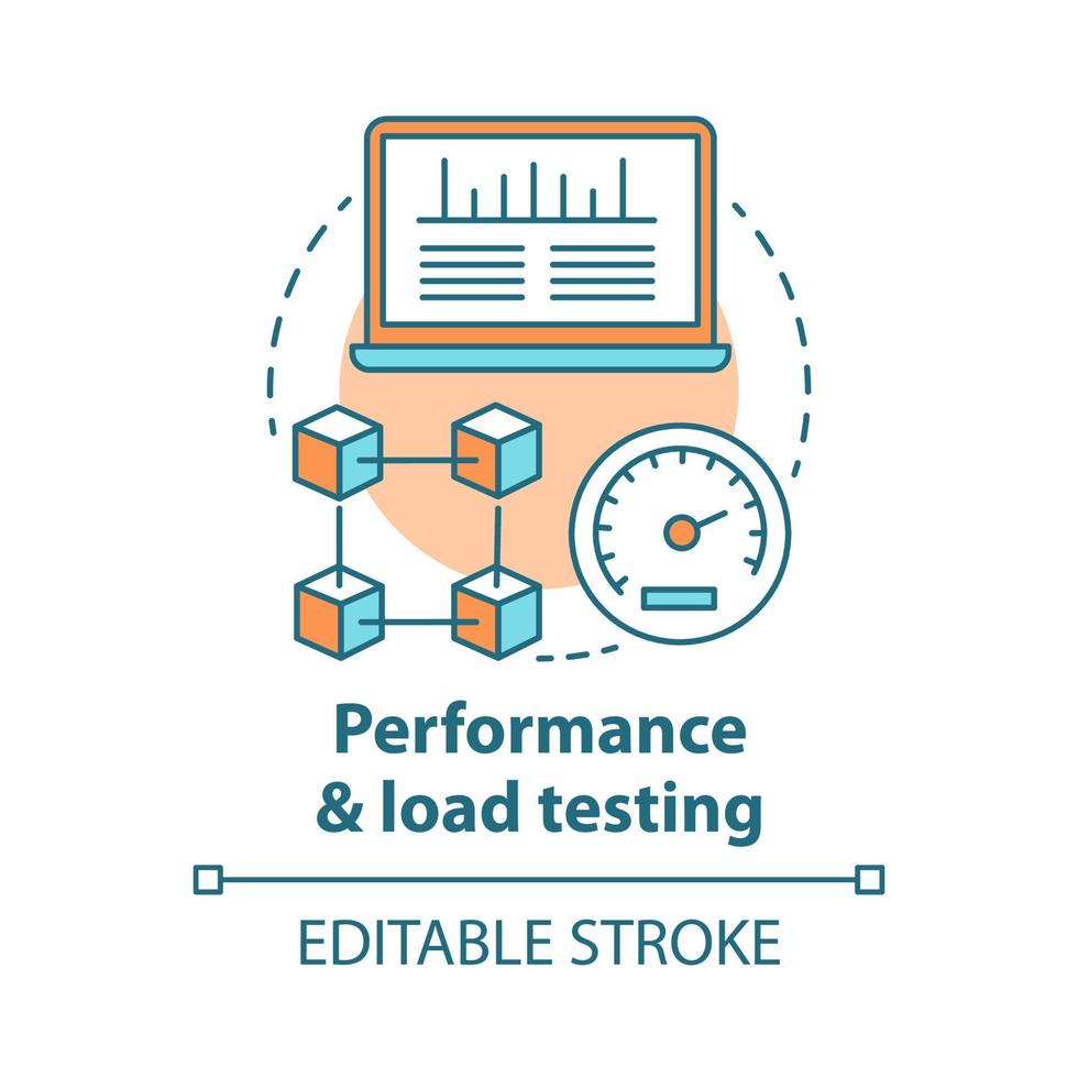 Performance and load testing concept icon. Research system speed, stability. Website speed optimization. Application check idea thin line illustration. Vector isolated outline drawing. Editable stroke Pro Vector