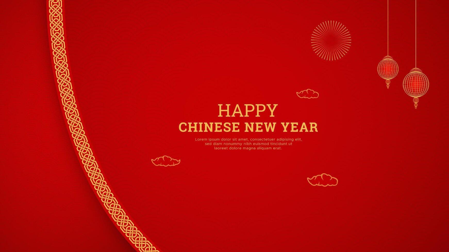 Happy Chinese New Year Red Background Design With Chinese Border Pattern and Lanterns Pro Vector