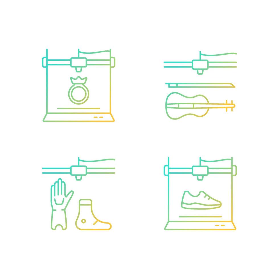 Building 3d objects process gradient linear vector icons set. Jewelry production. Artificial limbs fabrication. Thin line contour symbols bundle. Isolated outline illustrations collection Pro Vector