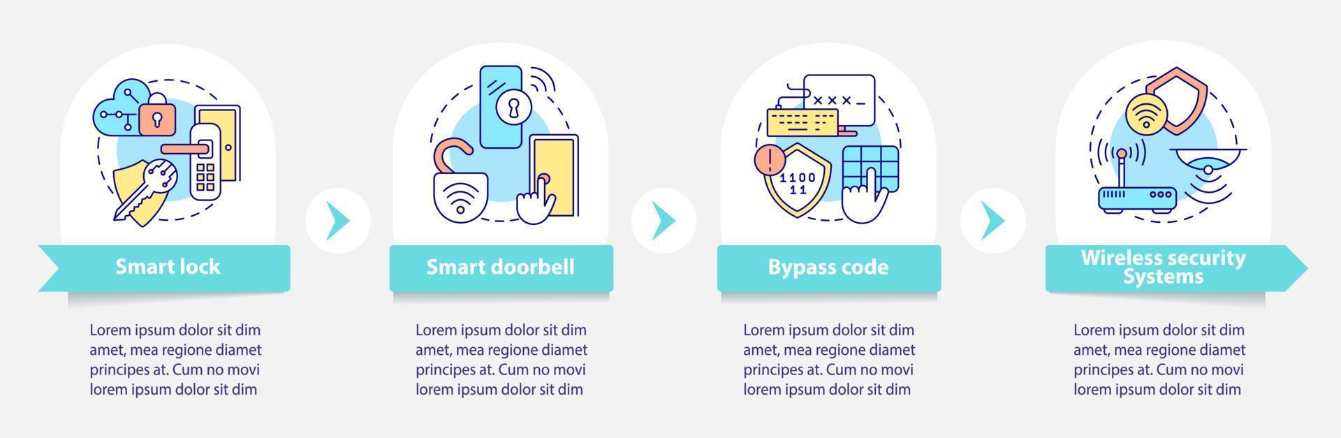 Smart home vector infographic template. Security equipment presentation outline design elements. Data visualization with 4 steps. Process timeline info chart. Workflow layout with line icons Pro Vector