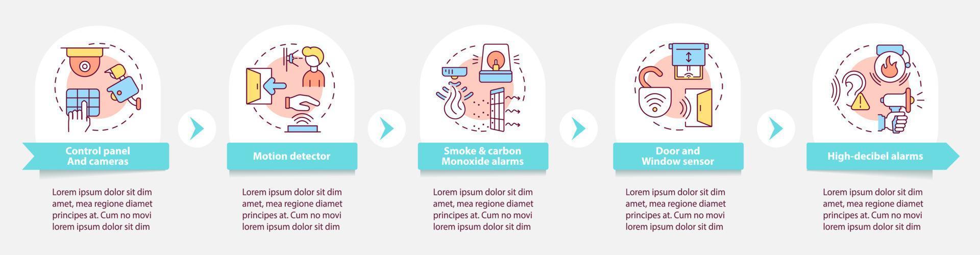 Property safety system vector infographic template. Smart home presentation outline design elements. Data visualization with 5 steps. Process timeline info chart. Workflow layout with line icons Pro Vector