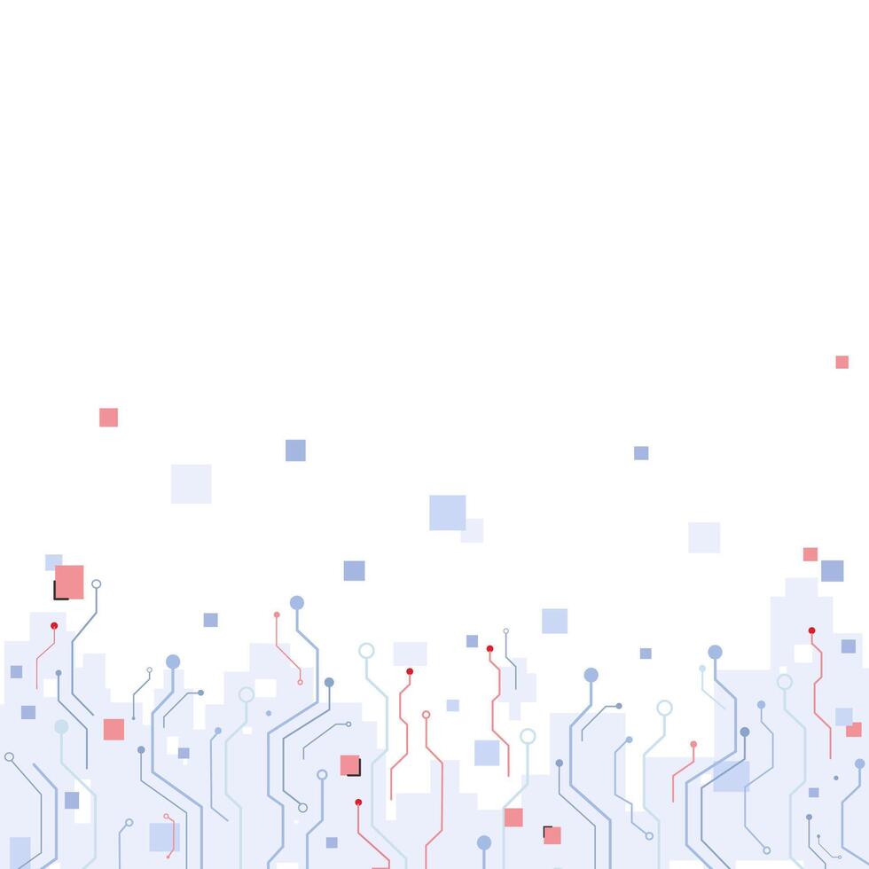 Blue and red circuit technology concept on white background. Clean square particle and line digital, electronic abstract. Pro Vector