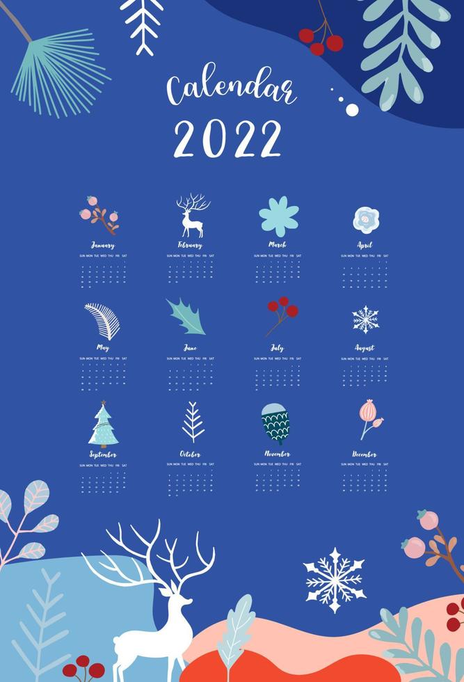 2022 table calendar week start on Sunday with winter,landscape that use for vertical digital and printable A4 A5 size Pro Vector