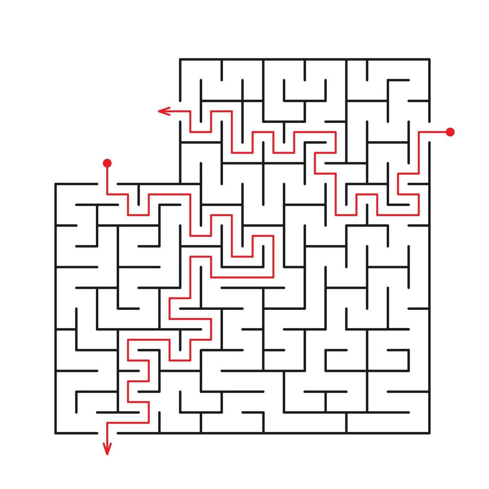 Vector illustration. Template for an educational logical game labyrinth for children with a solution. Find the right path Pro Vector