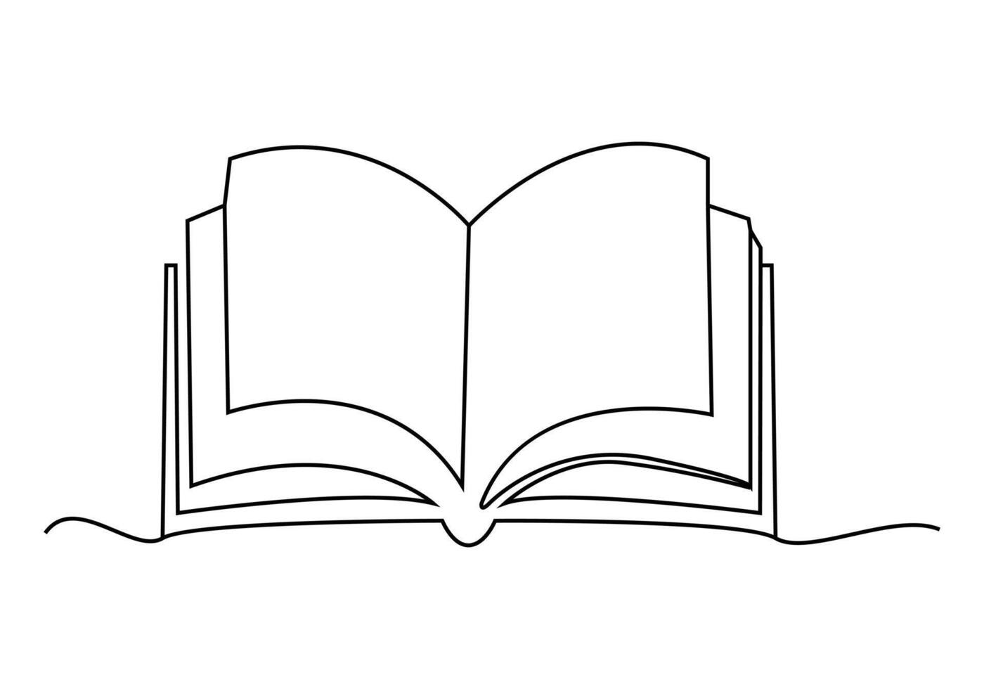 Opened book in continuous line drawing. Education study and knowledge library concept in simple linear style vector