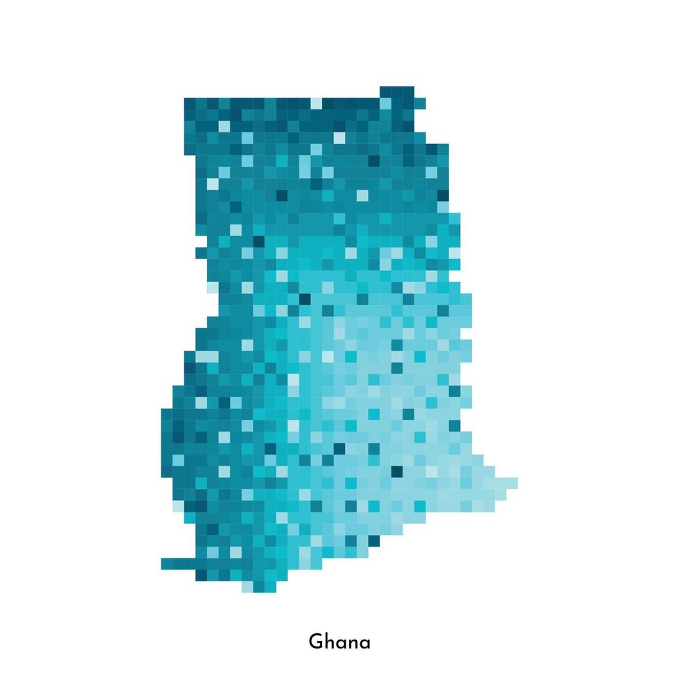 Vector isolated geometric concept with simple icy blue shape of Ghana map. Pixel art style for NFT template. Dotted logo with gradient texture for design on white background Pro Vector