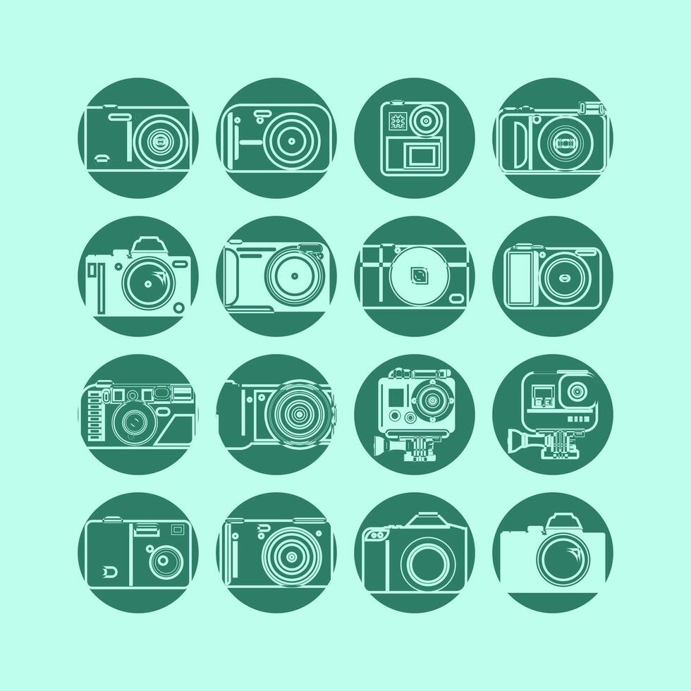 Camera icon set. Simple set of camera vector icons for web design on green background