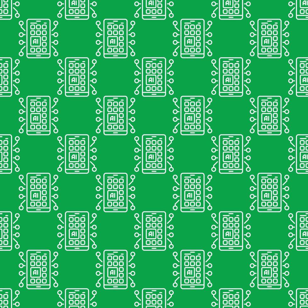 AI App on Smartphone Screen vector Artificial Intelligence linear green Seamless Pattern Pro Vector