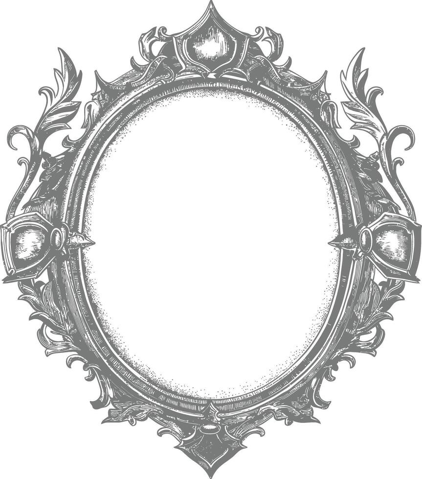 AI generated shield element with circle shape in old engraving style Pro Vector