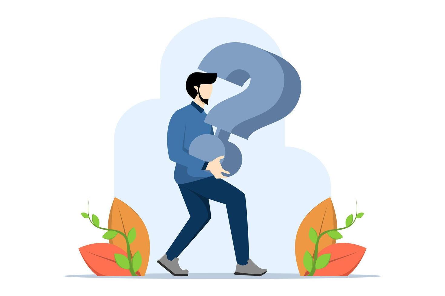 Critical business problem concept, difficult questions without answers or solutions, frustrated trying businessman carrying a burden of big question marks, burden of doubt or stress concept. Pro Vector