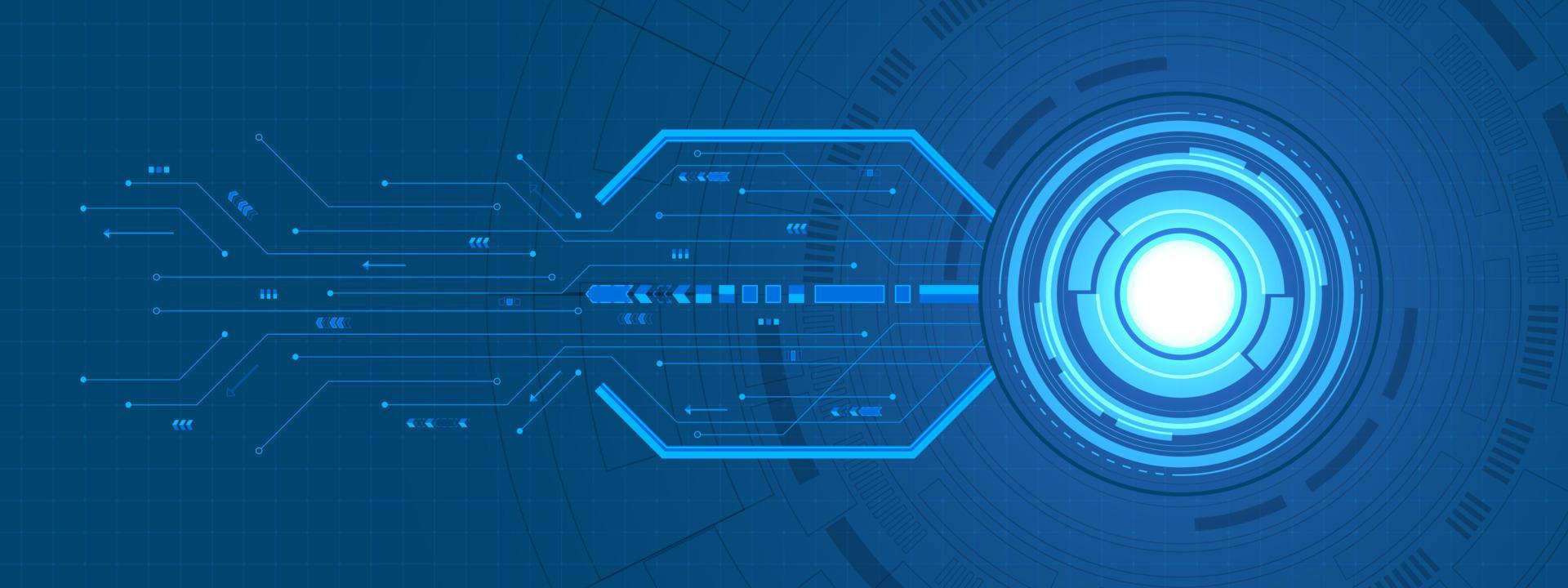 Abstract overlap circle digital background, smart lens technology, circuit board, arrow speed up Pro Vector