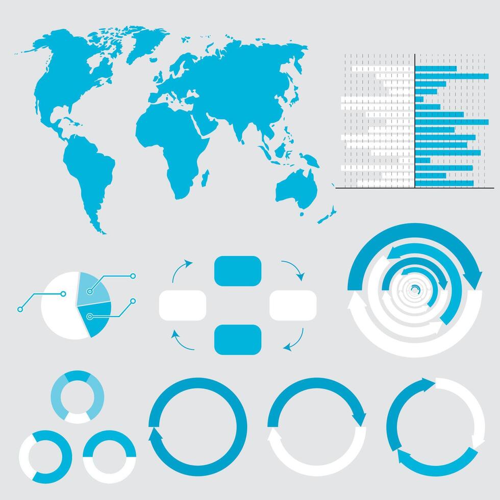 Infographic with world map chart and graphic. Vector illustration. Business chart symbol, technology global option, Infographic timeline, international statistics communication, visualization data Pro Vector