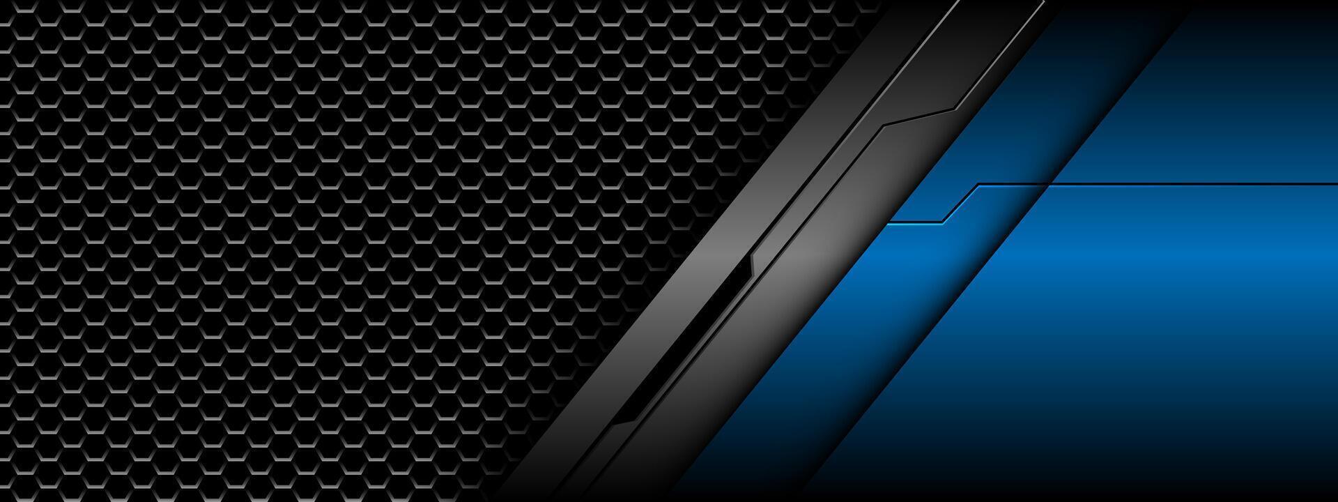 Abstract blue grey metallic black line circuit cyber grey hexagon mesh pattern design modern futuristic technology creative background vector Pro Vector