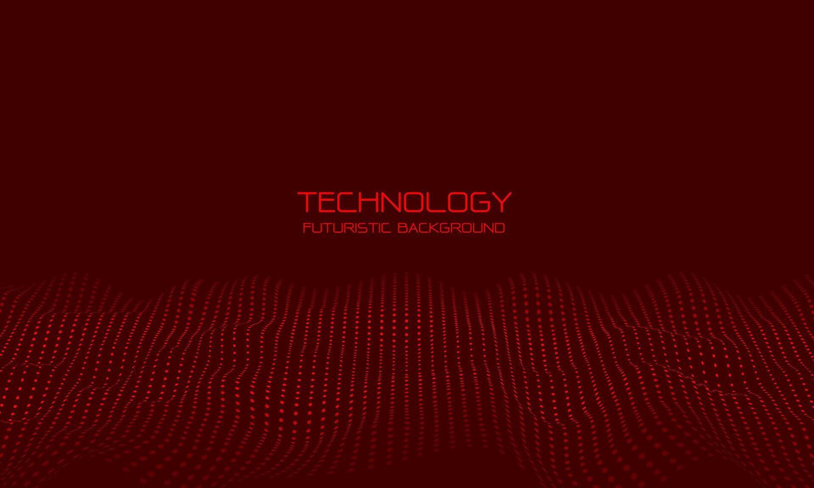 Abstract red wave particles technology futuristic flow sound mesh pattern grid landscape digital data structure consist dot elements background vector Pro Vector