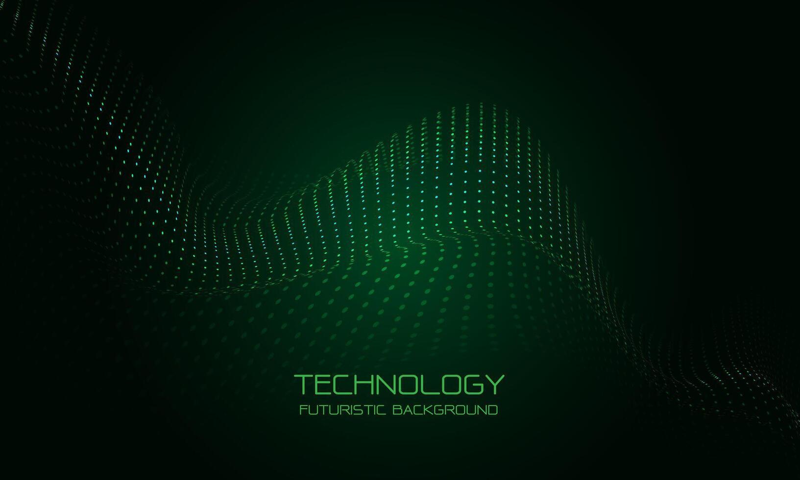 Abstract green wave particles technology futuristic flow sound mesh pattern grid landscape digital data structure consist dot elements background vector Pro Vector