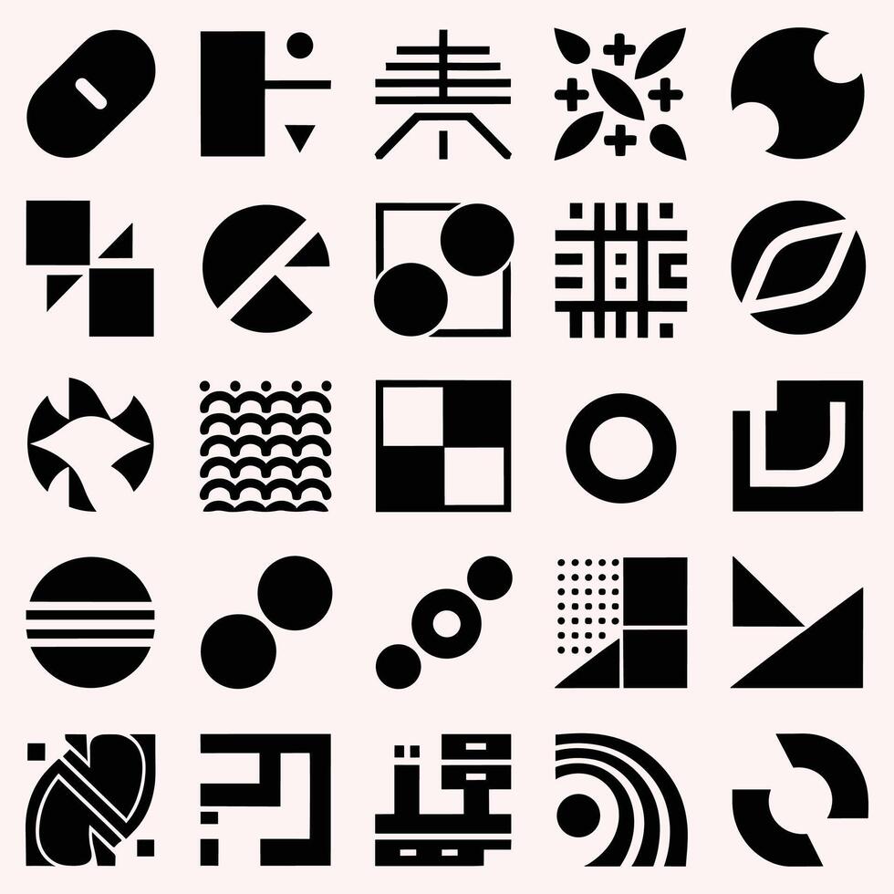 Abstract and basic shapes collection. Minimalist symbols. Black Iconography. Flat vector icon. Icons set. Primitive forms. Modernist abstract geometric shapes. Geometric elements. Brutalist design