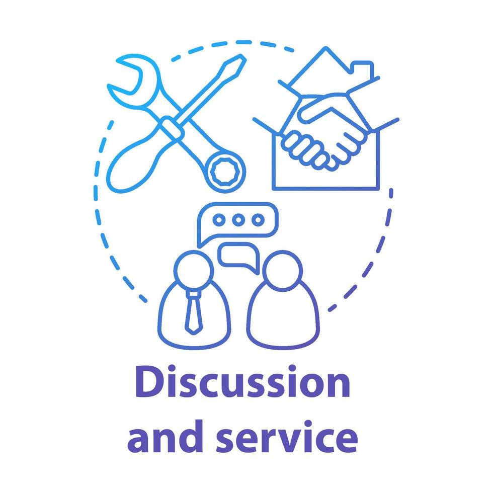 Discussion and service blue gradient concept icon. Smart house customer support idea thin line illustration. Helping with innovative technology problems. Vector isolated outline drawing Pro Vector and Pro SVG