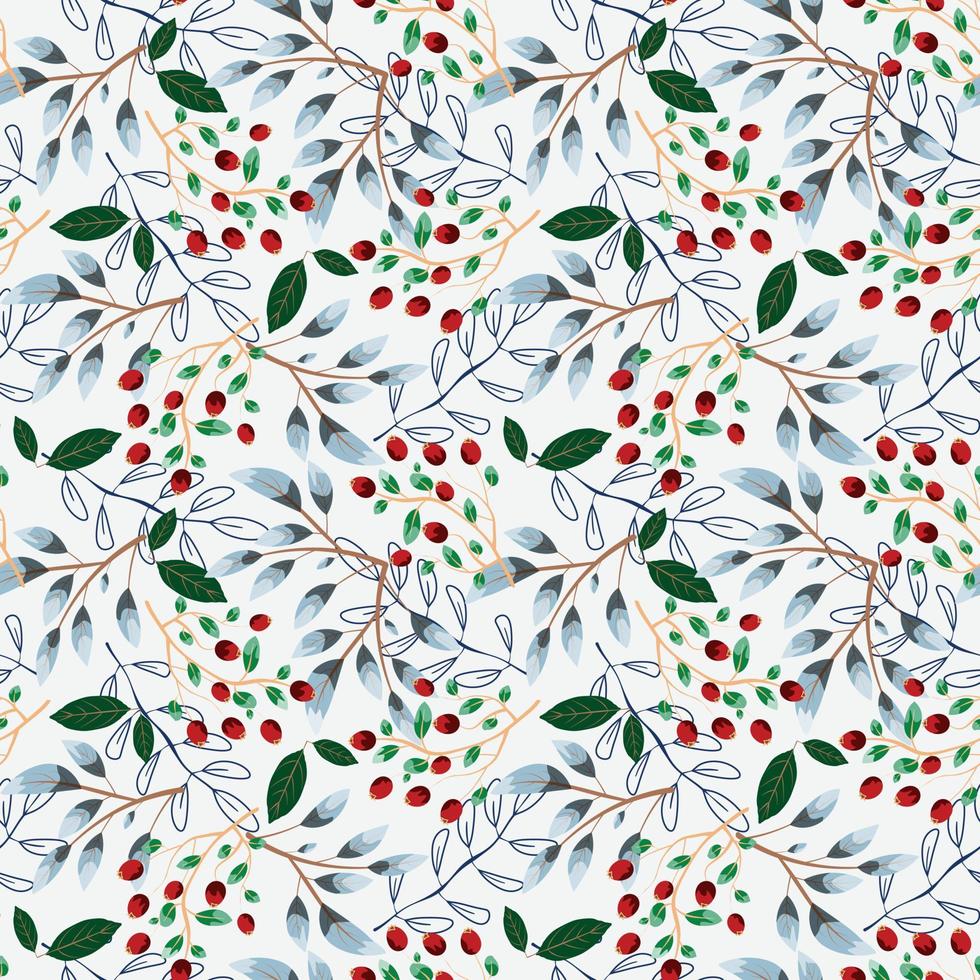 Leave pattern with berries. Winter seamless pattern with berries and branches. For textile, paper, wallpaper, packaging. Vector pattern. Pro Vector
