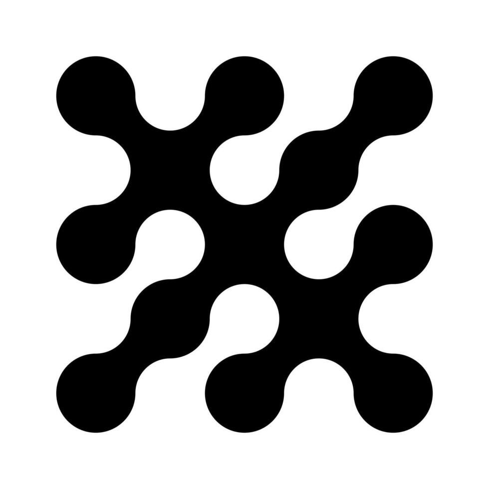 Metaball logo. Dots connected icon. Circles illusioned pattern. Modern integration symbol. Transition of metaballs. Abstract point innovation background. Connected organic blobs. Vector flat template. Pro Vector