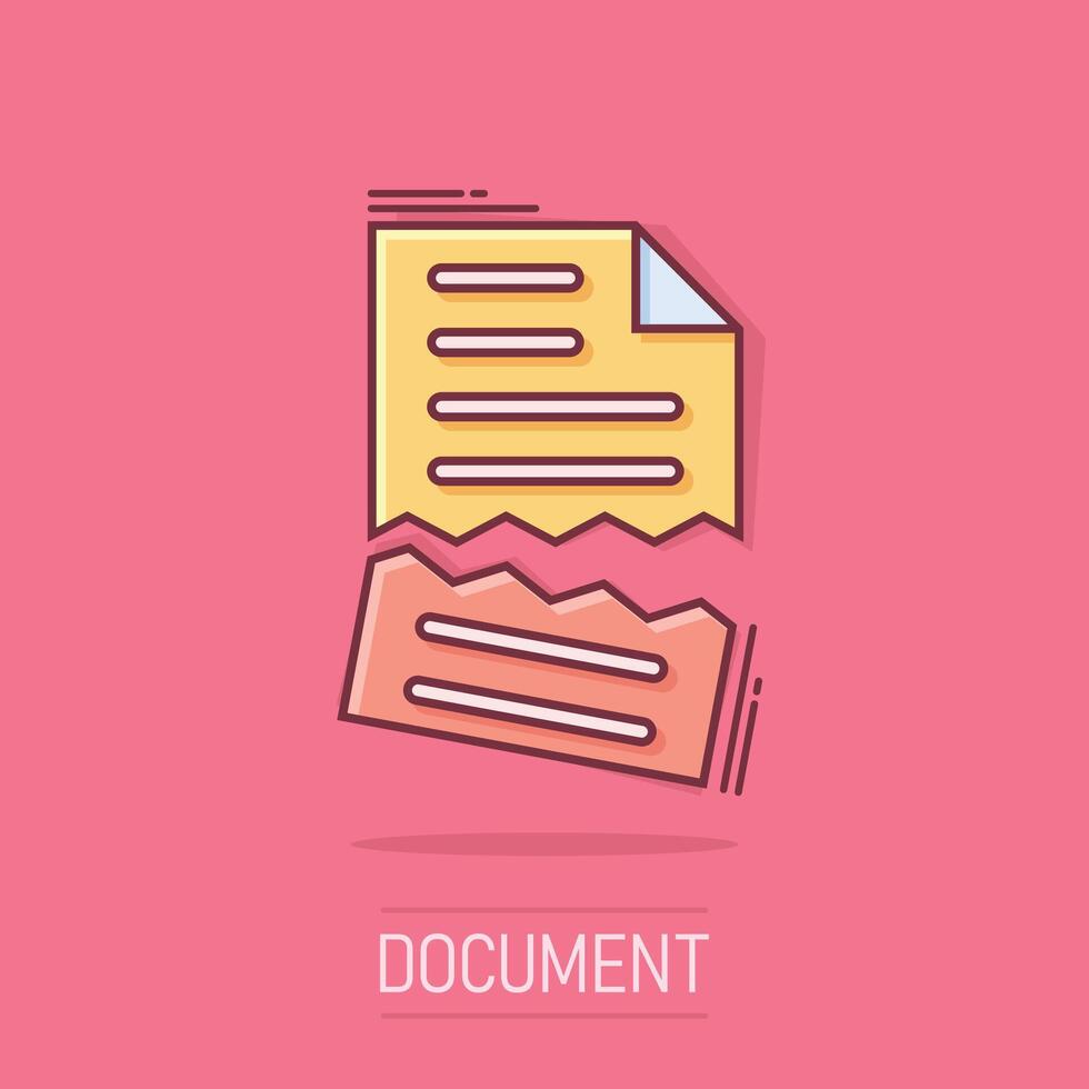 Document error icon in comic style. Broken report cartoon vector illustration on isolated background. Damaged splash effect business concept. Pro Vector