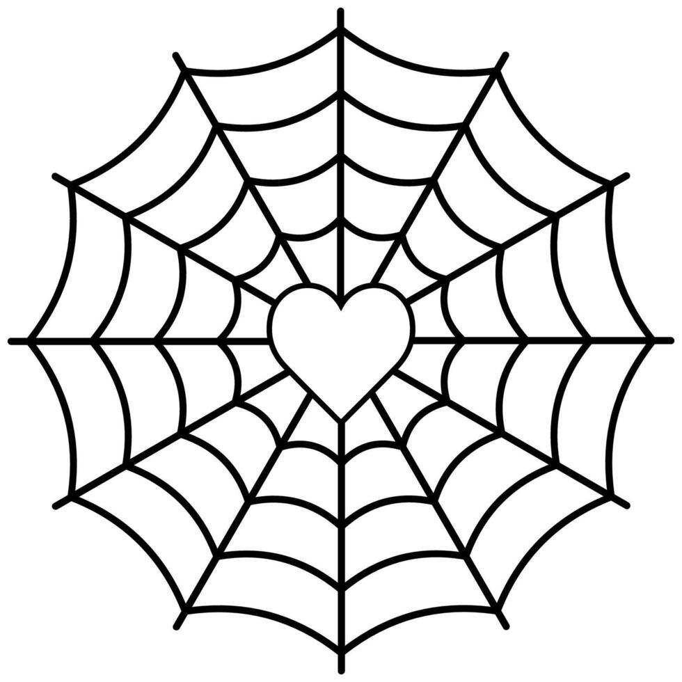 Spider web with heart pattern inside, love networks, heart mesh Pro Vector