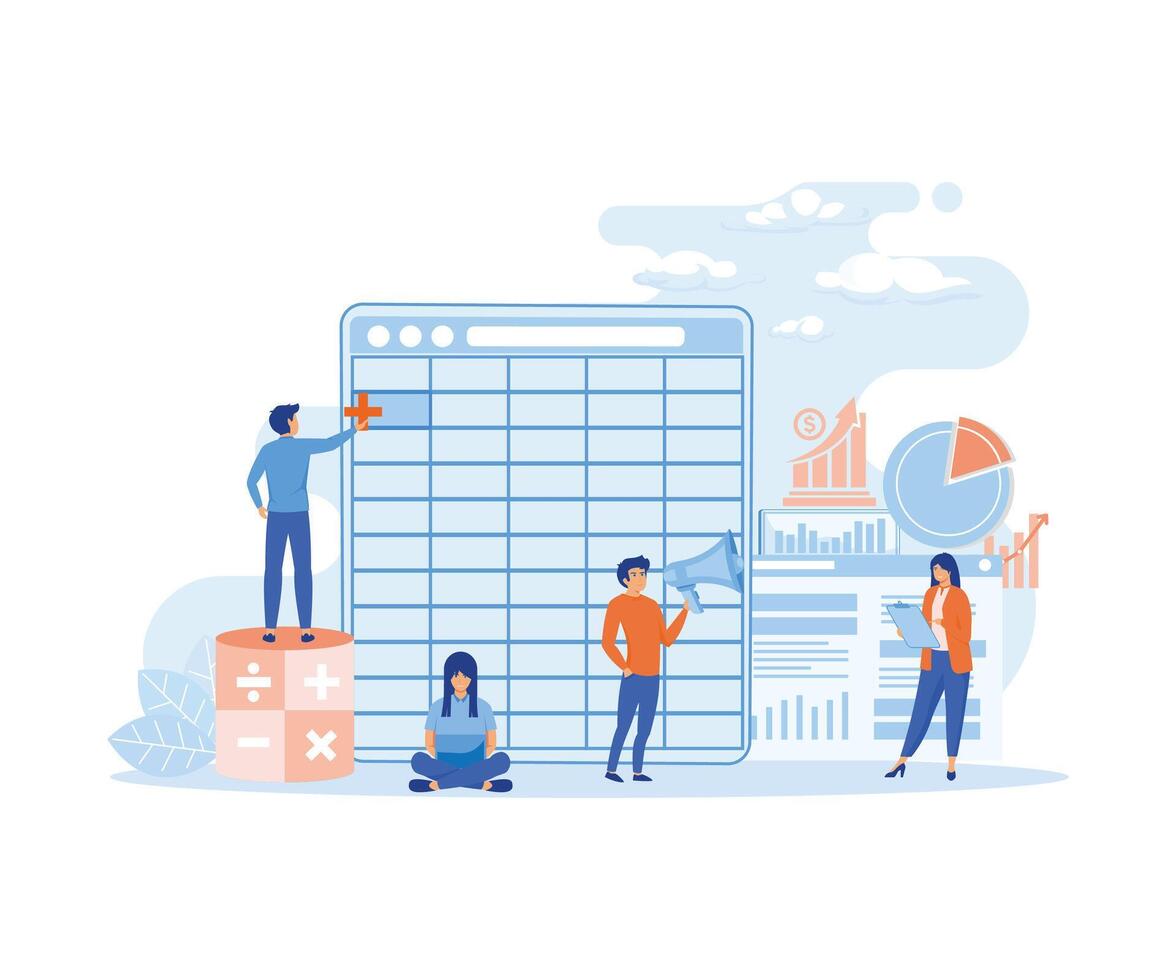 Software for accounting with sheets, formulas, calculator. creating a balance sheet is easier with software. flat vector modern illustration Pro Vector