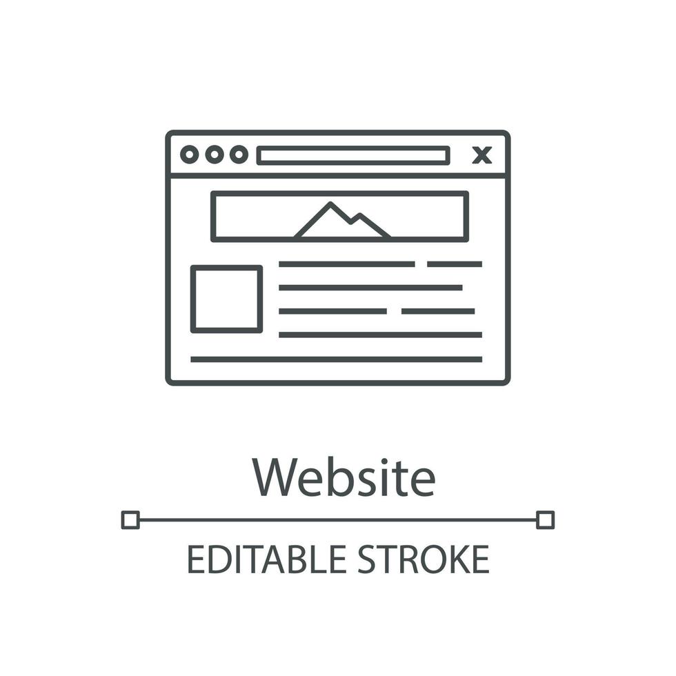 Website linear icon. Web page. Web browser interface. Thin line illustration. Internet marketing. Social media, internet shop webpage template. Website design. Vector isolated drawing. Editable stroke Pro Vector