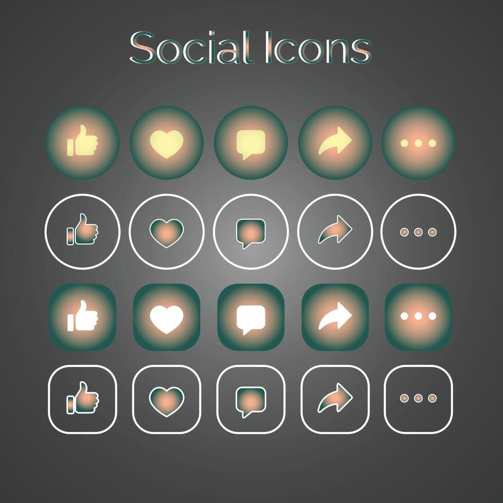 Green Gradient Theme Set of generic social media user interface icons. Like, comment, share and save icons. Social media flat icon. Vector Free Vector